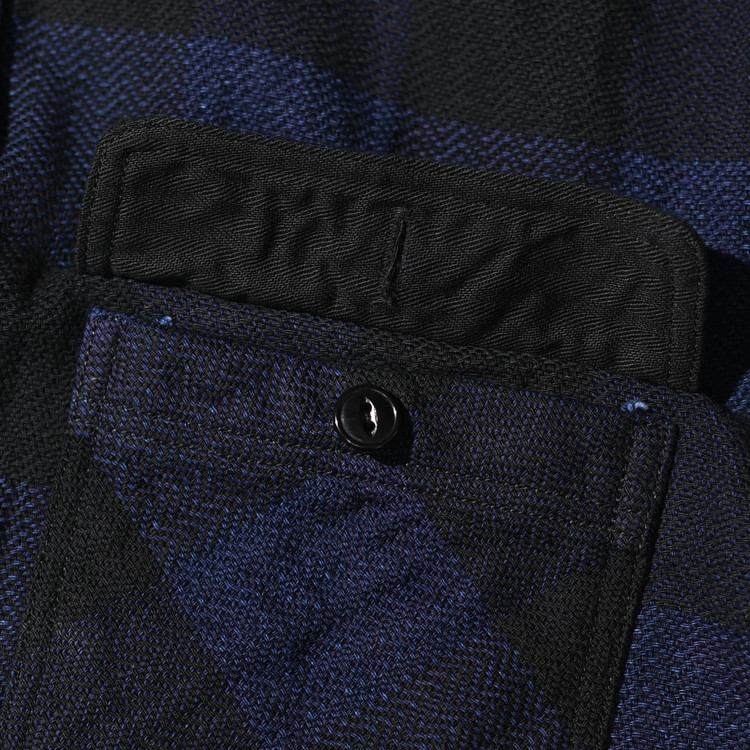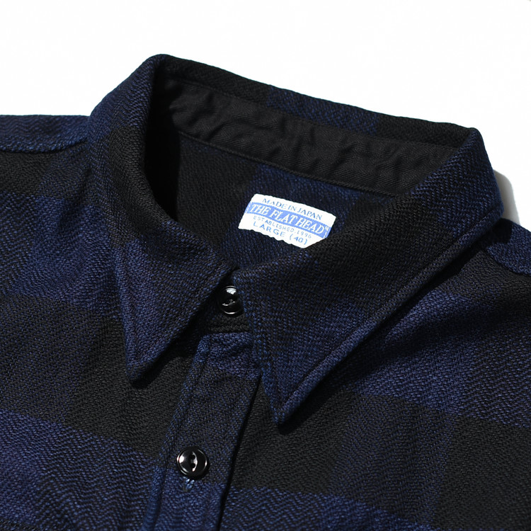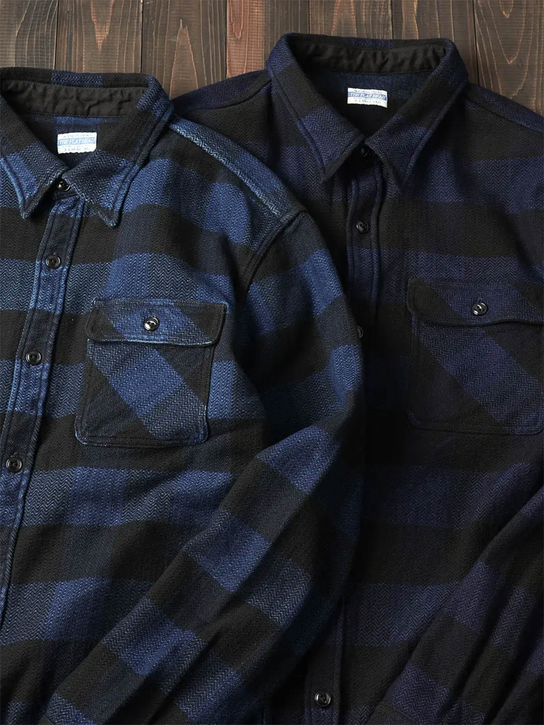 인디고 로프 다이닝한 실로 직조한 인디고 블록 체크 넬 원단을 사용하여