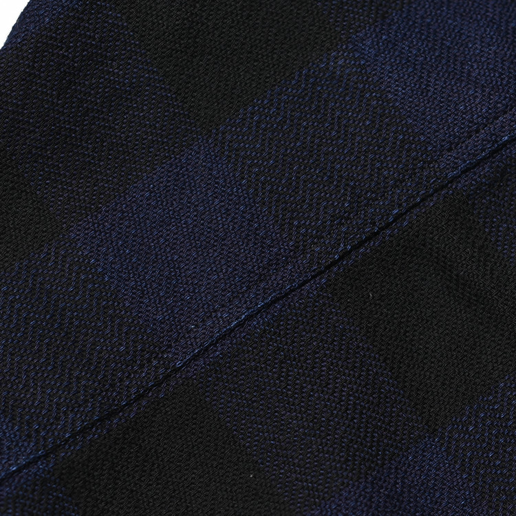 짙은 네이비 컬러에서 점차 연한 블루로 색감이 변화해 가면서 블록 체크 패턴이 더욱 도드라지고