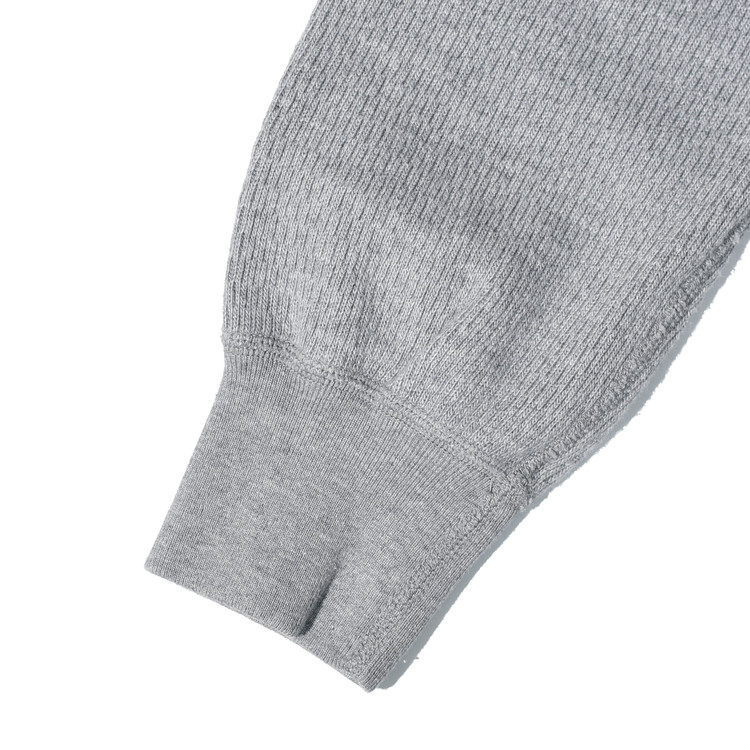 양쪽 어깨 부분에는 리브 조직의 원단을 덧대어 봉제함으로써 봉제 부위를 보호하고 내구성을 높였습니다.
