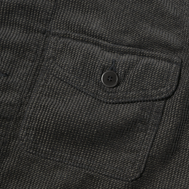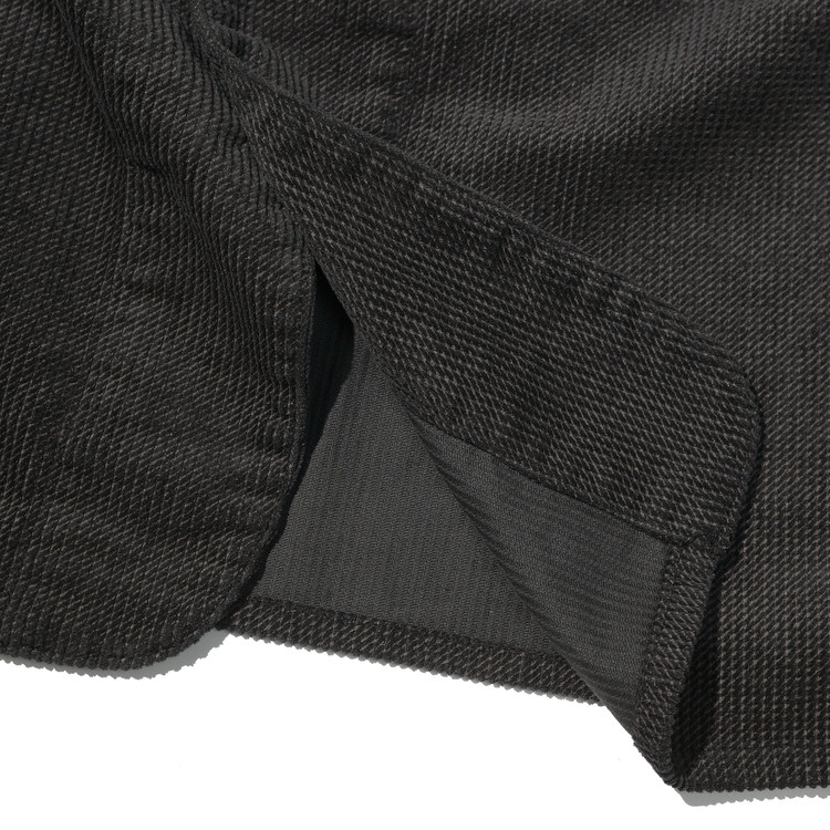 원단은 사선 프린트가 더해진 독특한 코듀로이로,
