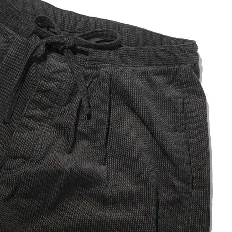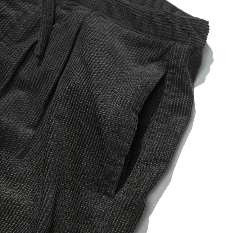 허리는 동일 원단의 스핀들로 조여 착용하는 이지 팬츠 사양으로 설계되었습니다.