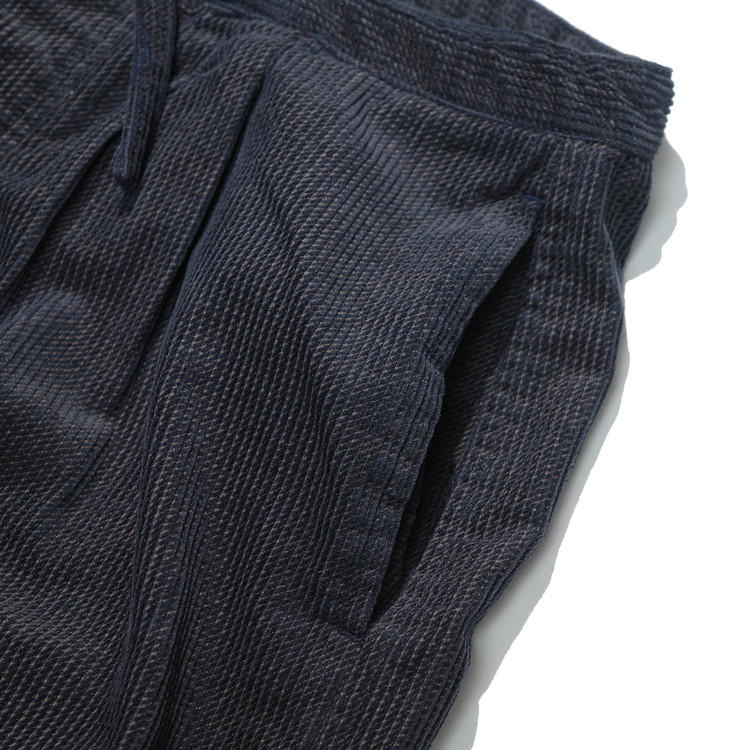허리는 동일 원단의 스핀들로 조여 착용하는 이지 팬츠 사양으로 설계되었습니다.