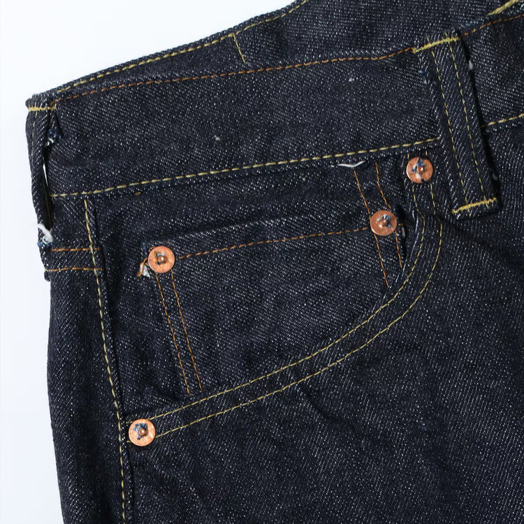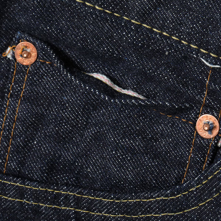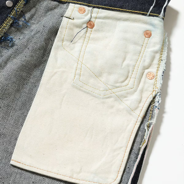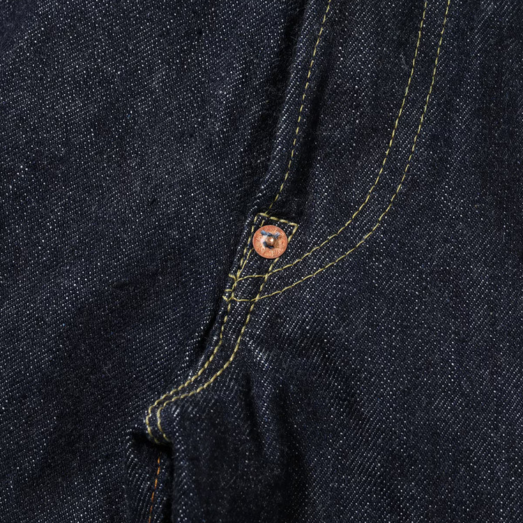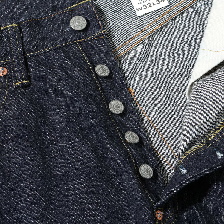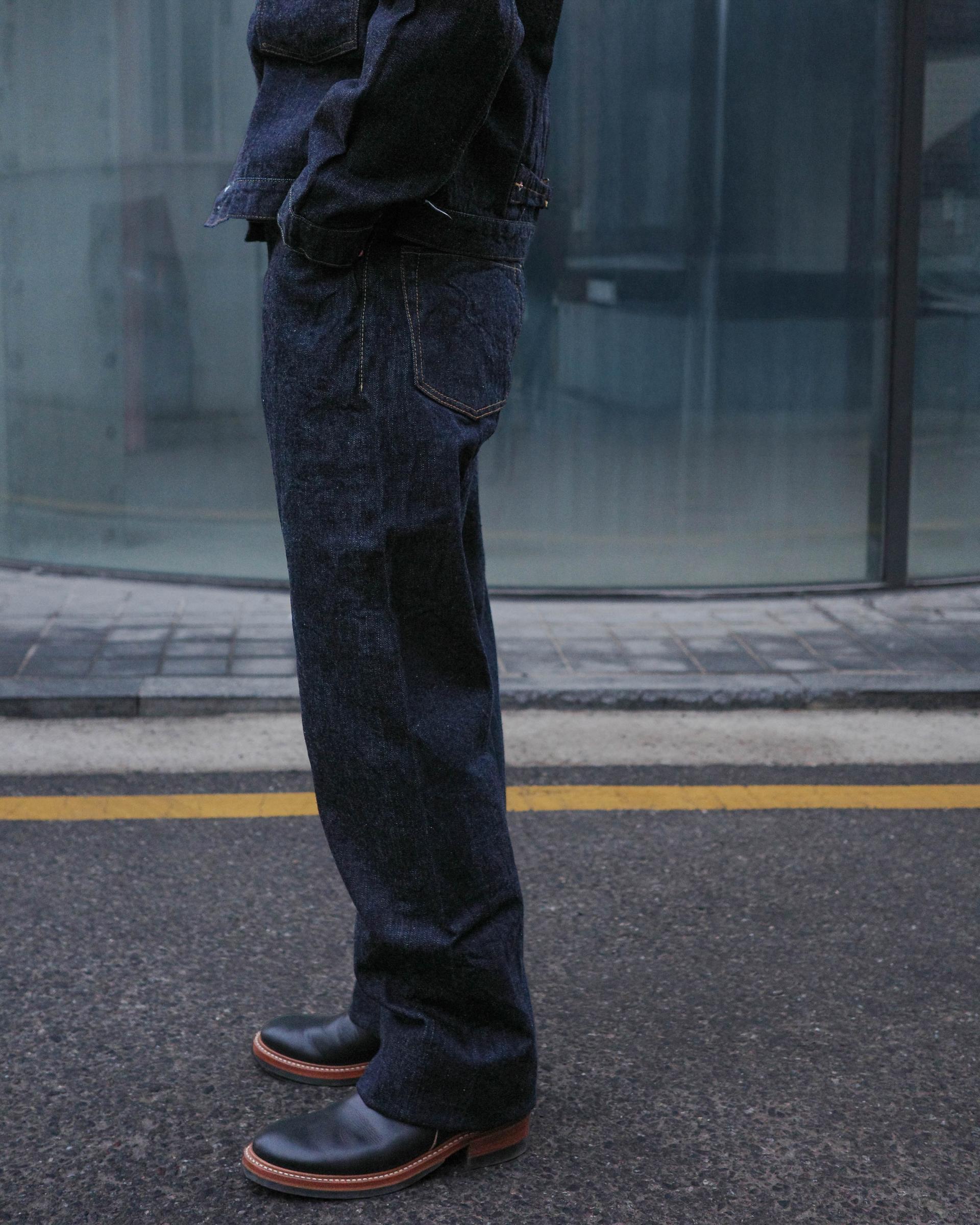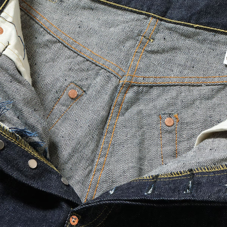 다만, 가랑이 리벳과 뒤 중심부의 말아박기 봉제 방향은 전쟁 전 모델의 디테일을 그대로 담고 있습니다.