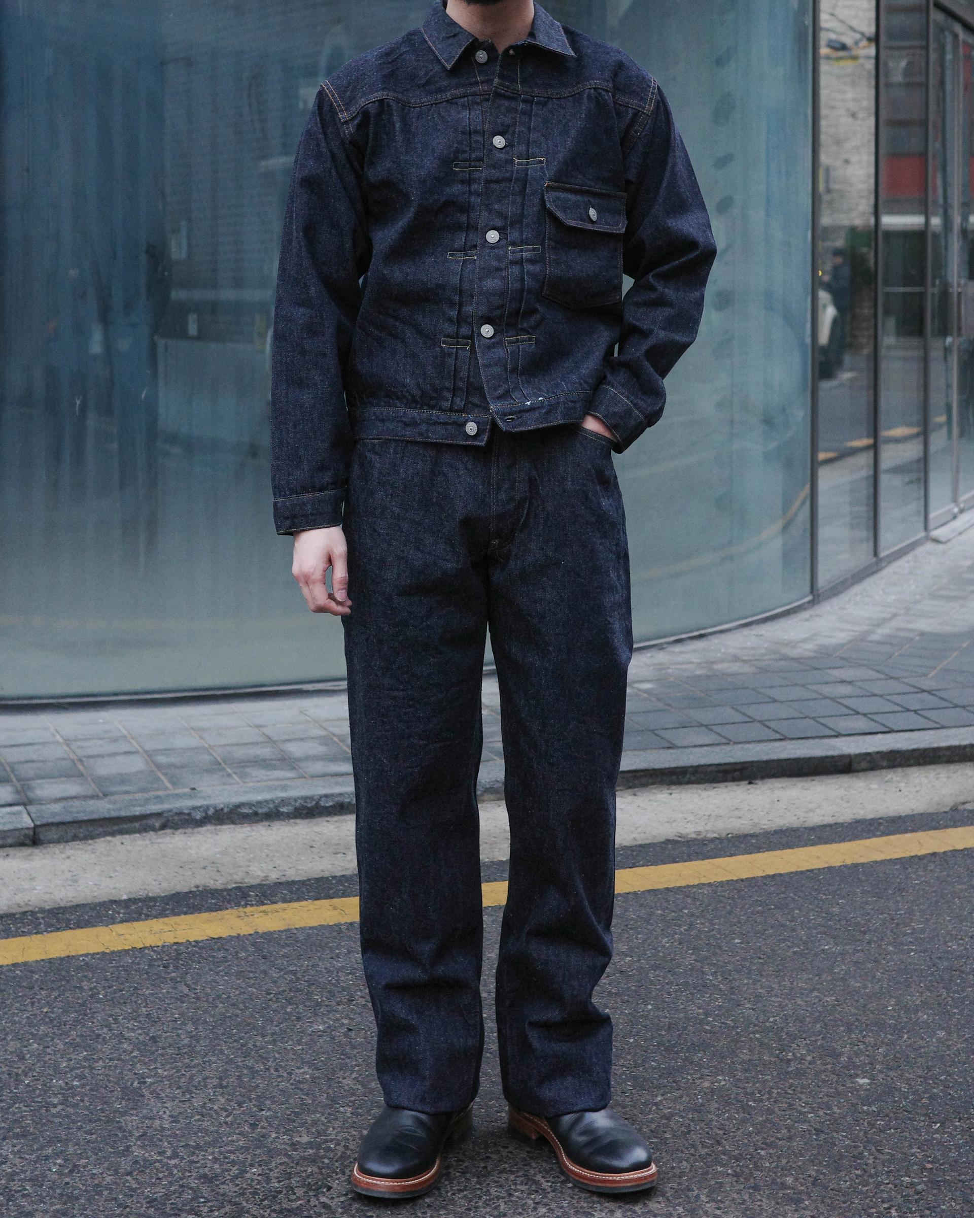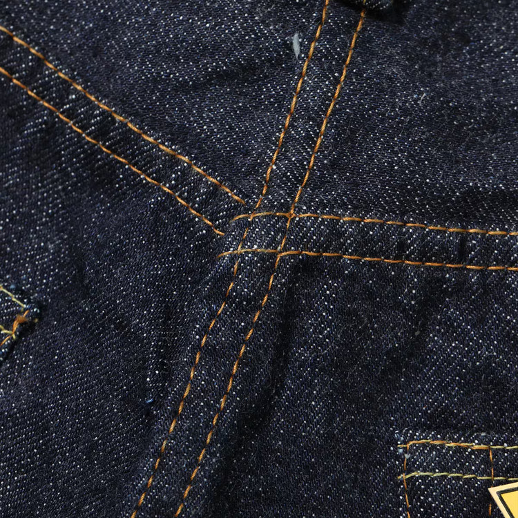 원단은 36년 데님 블라우스와 마찬가지로, 1930년대 방적 환경을 재현한 불균일한 실로 제작한 13온스 셀비지 데님을 사용해