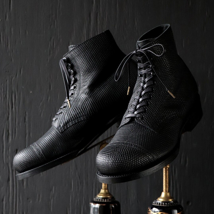 흔하게 볼 수 없는 리자드 가죽을 사용한 새로운 아미 라스트 미드 컷 드레스 부츠