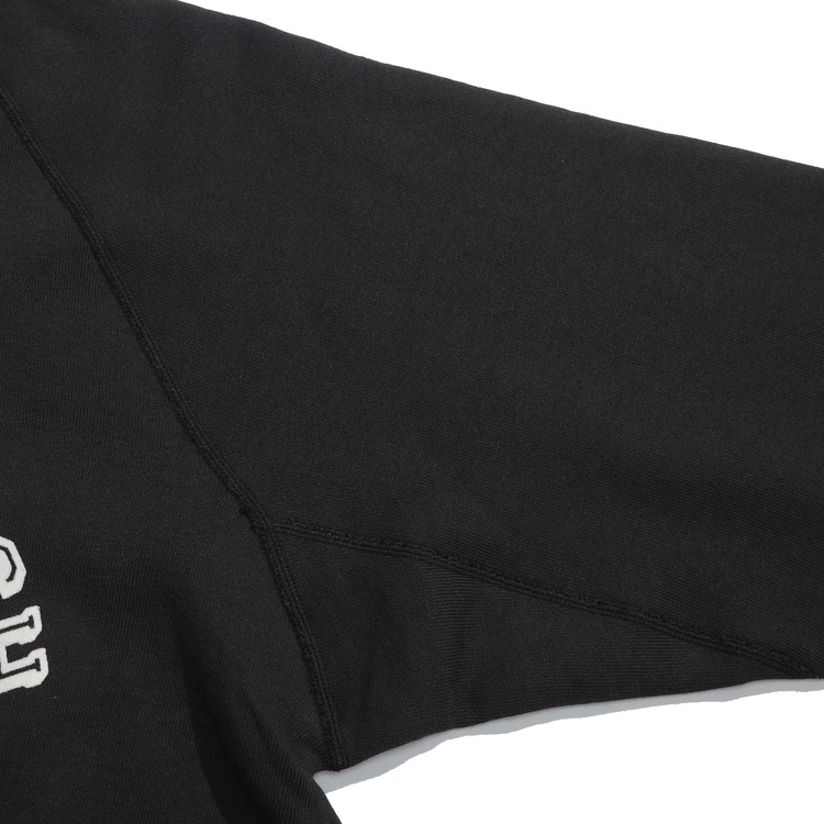 409모델은 래글런 슬리브의 스티치가 살아 있는, 정통적인 스웨트셔츠에 플로키 프린트가 더해진 제품입니다.