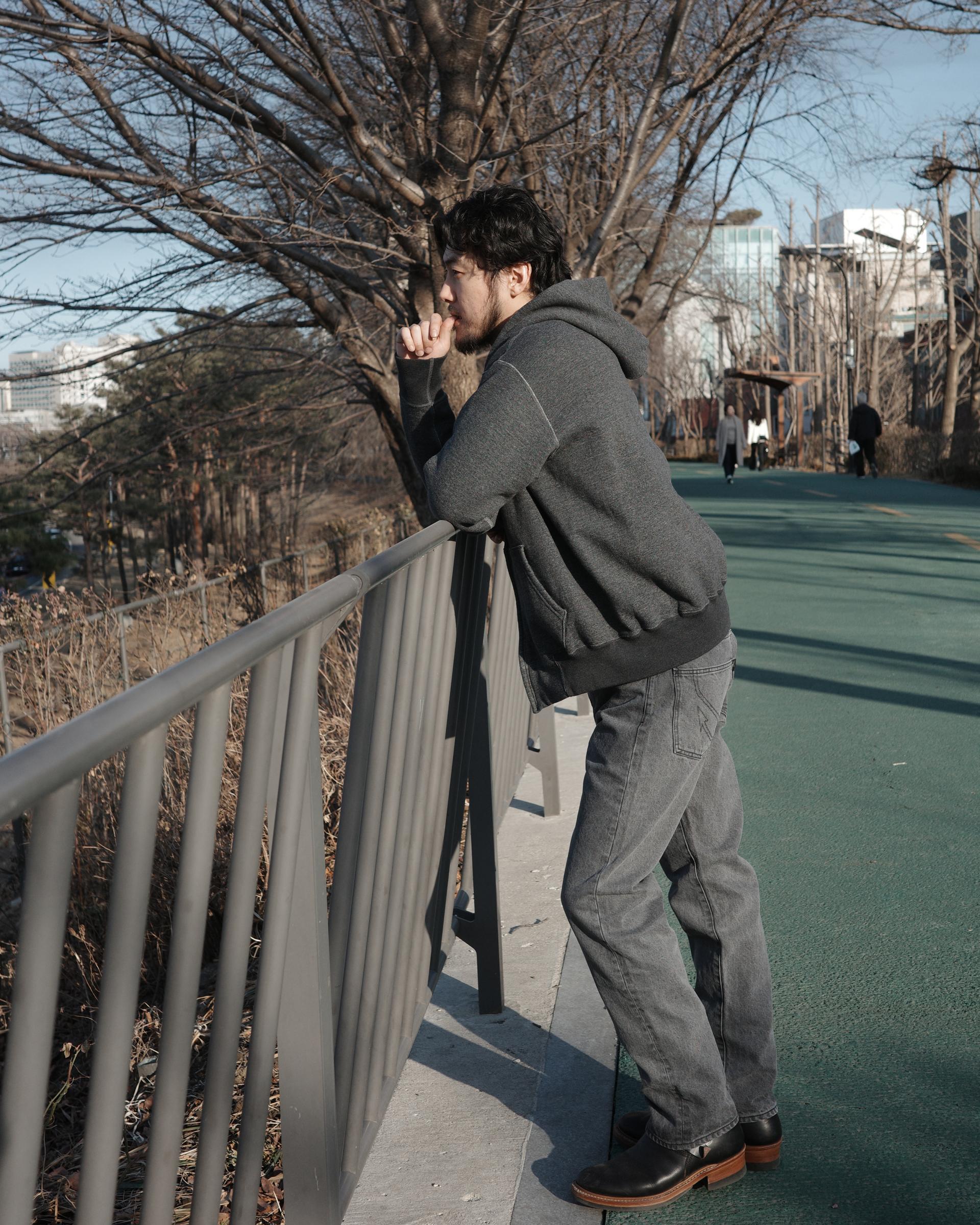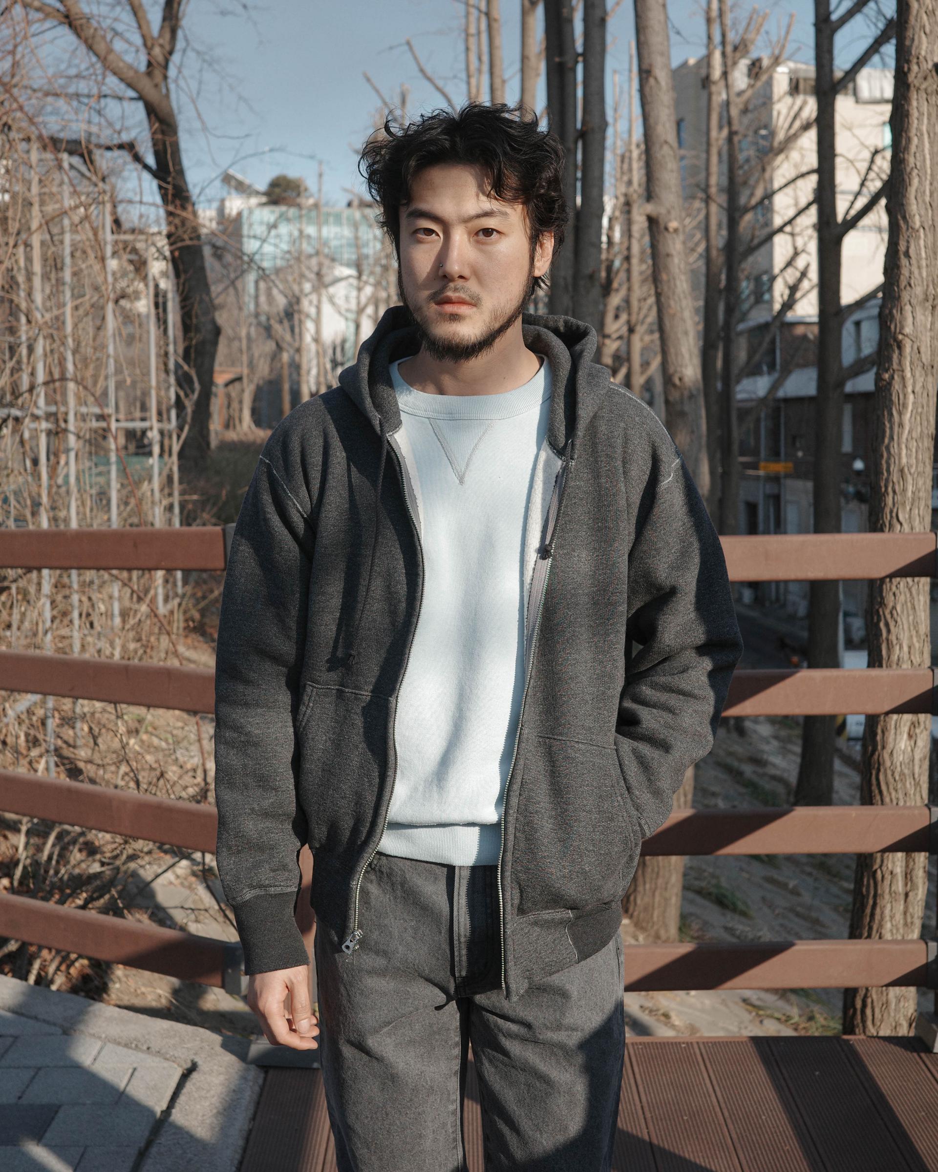 기존보다 도톰한 저지 원단으로 제작한 집업 파카는