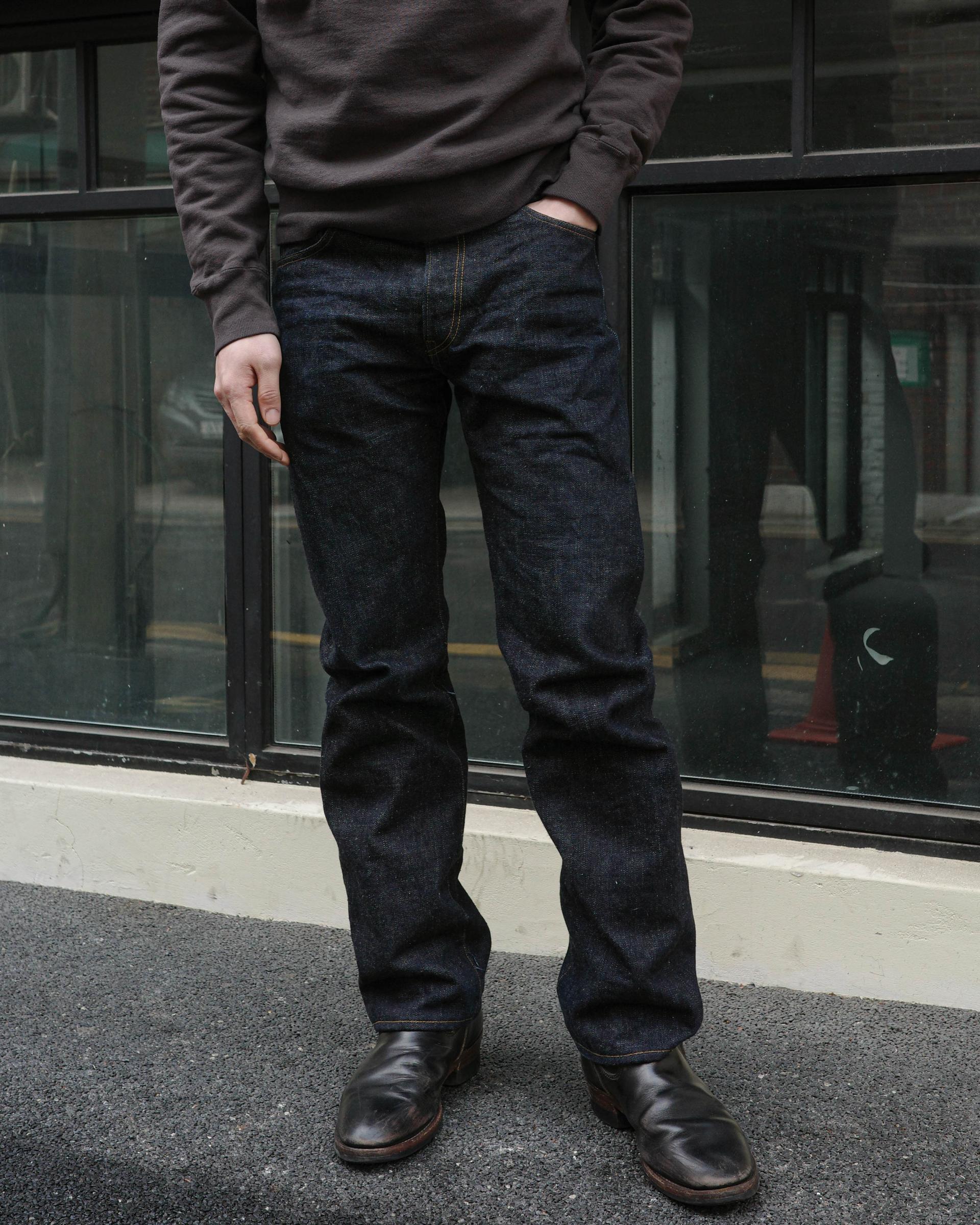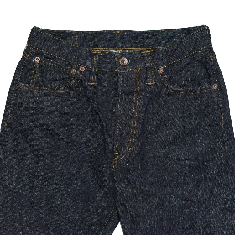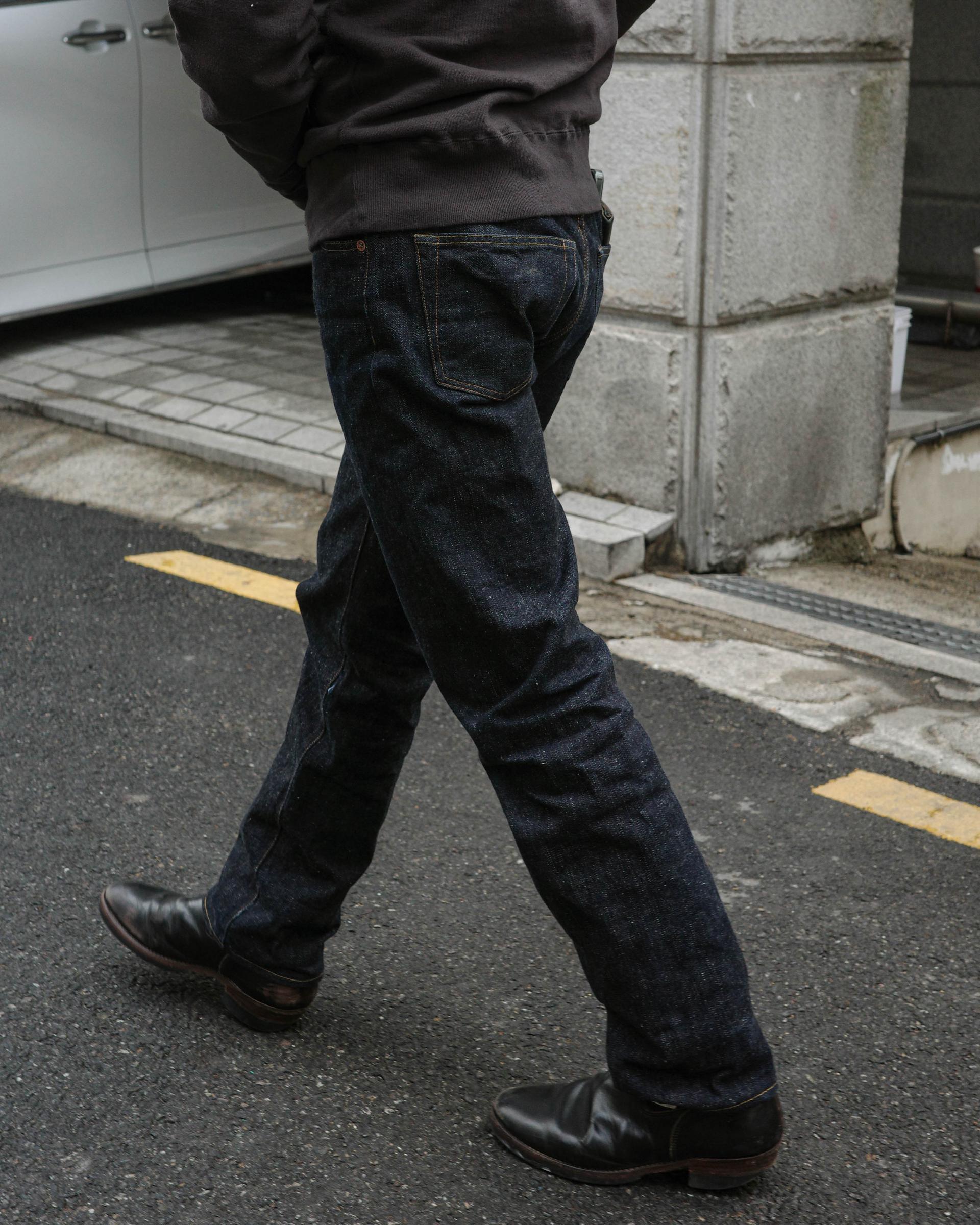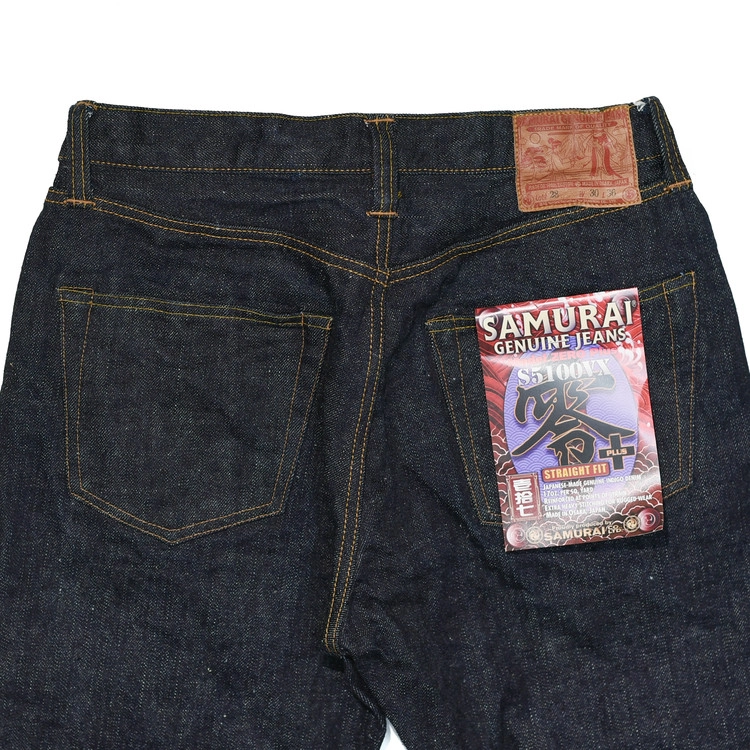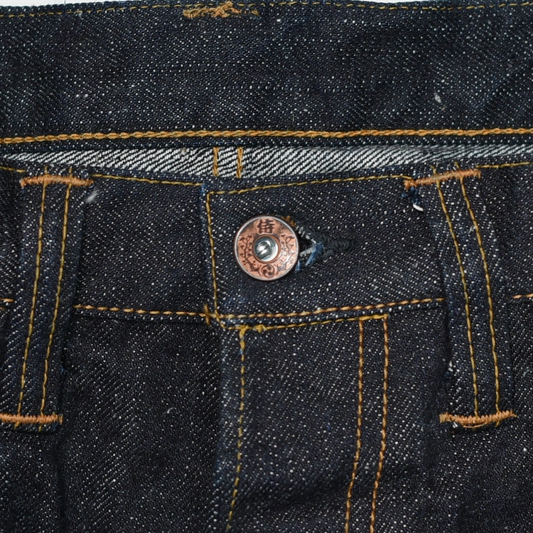 사무라이 진즈 오리지널 데님 제로(零) + 셀비지로 제작된 스트레이트 핏 모델입니다.