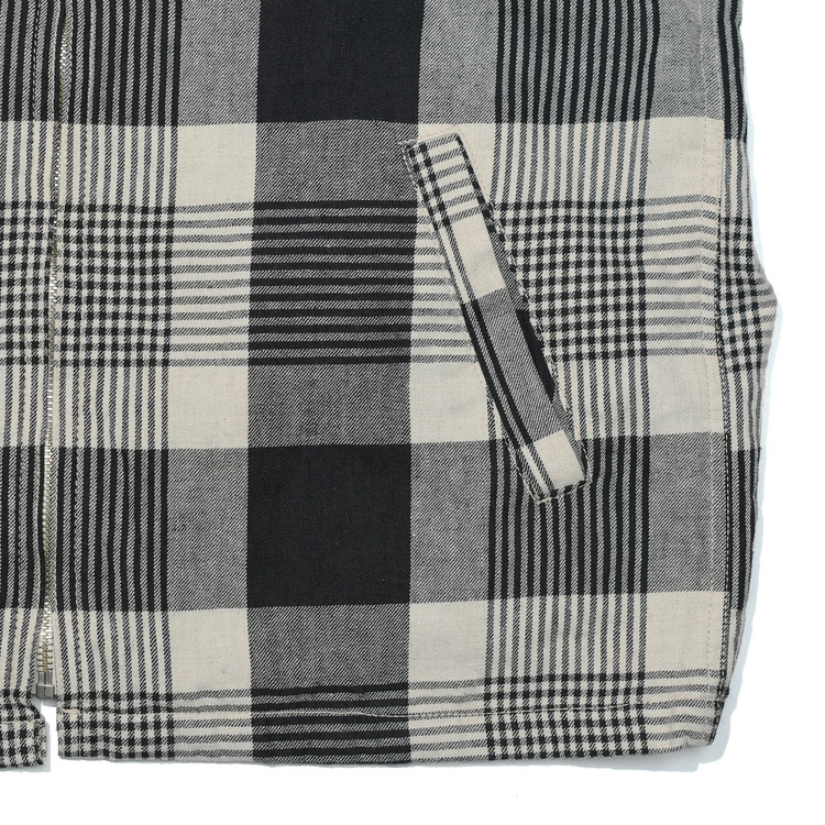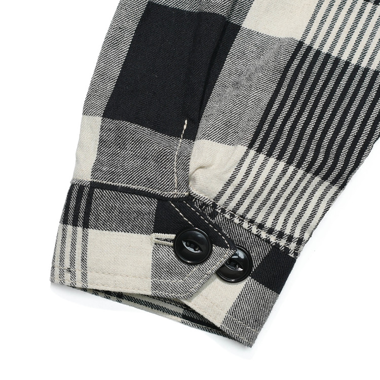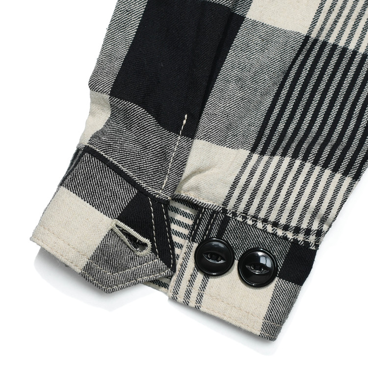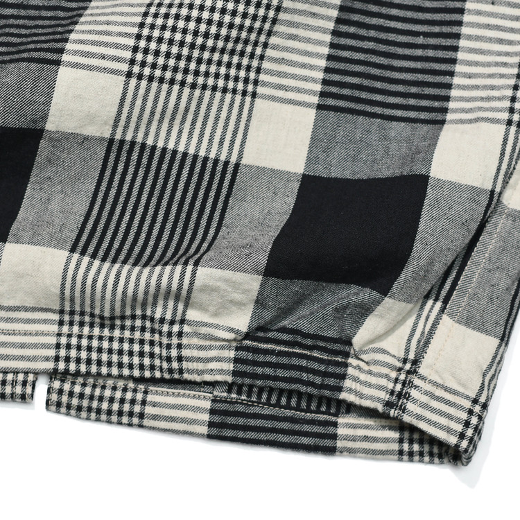 빈티지한 무드의 자연스러운 주름과 요철감이 살아 있는 약간 얇은 두께의 트윌 체크 원단을 사용했습니다.