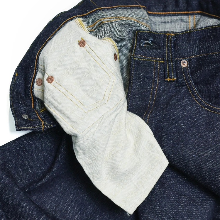 사용한 데님 원단은 사무라이 진즈의 오리지널인 '17oz 무사도' 셀비지 원단으로