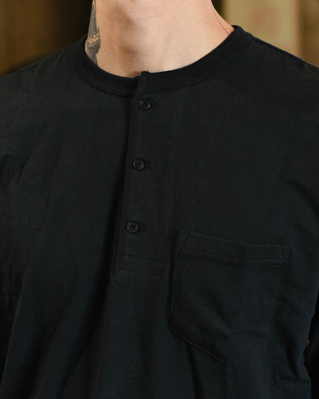 GH-26 STANDARD HENRY POCKET L/S T-SHIRTS [Black]SALE
