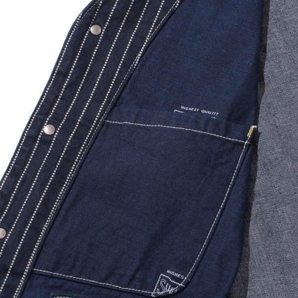 전면에 9온즈 와바시 원단과 뒷면에 11온즈 데님 원단으로 제작된 와바시 워크 베스트