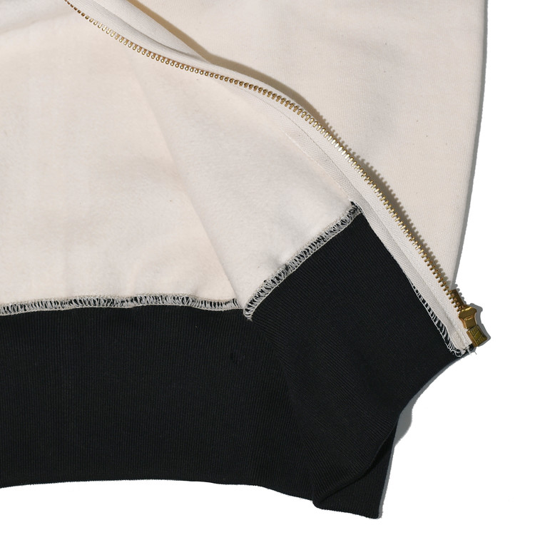 오리지널 빈티지와 같은 절개선이 없는 루프휠 원단을 사용했습니다.