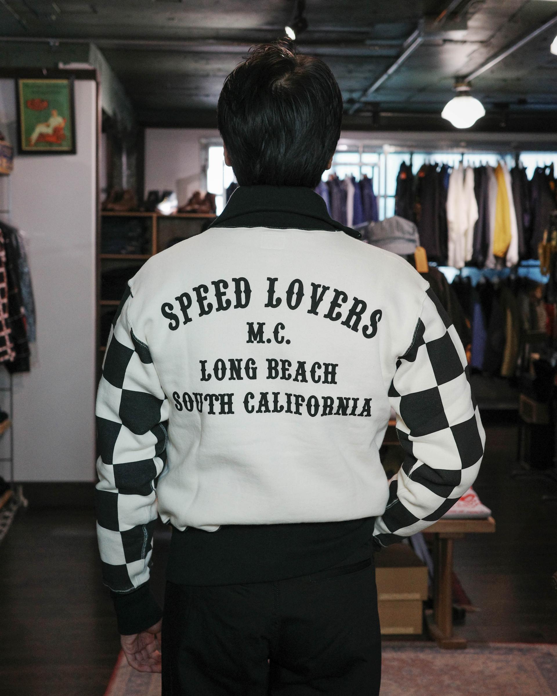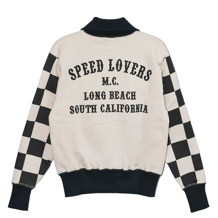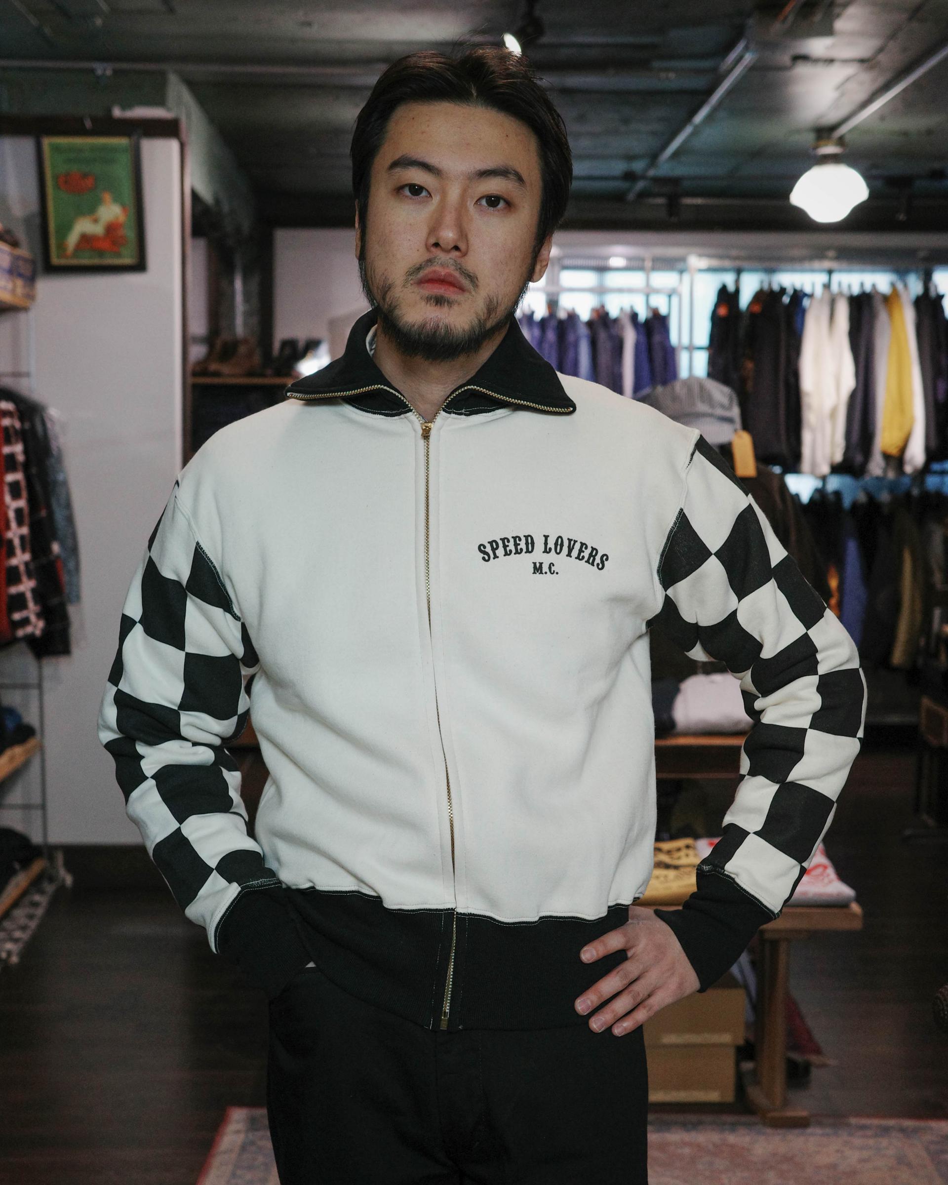 Checker Flag Sleeve Full Zip Turtle Neck Sweat