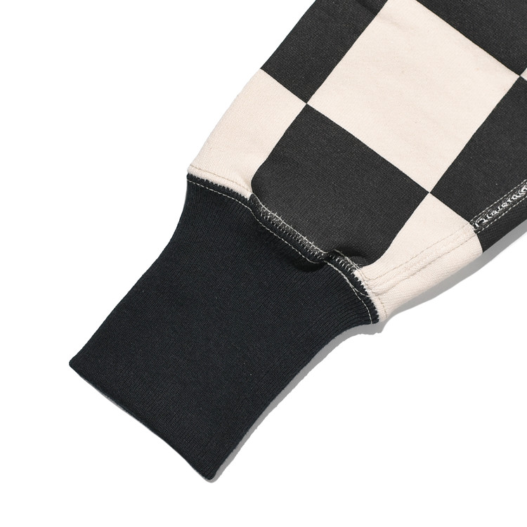 특이한 점은 팔 부분 체커 플래그 무늬가 러버 나염된 것으로